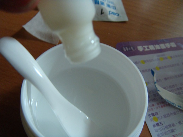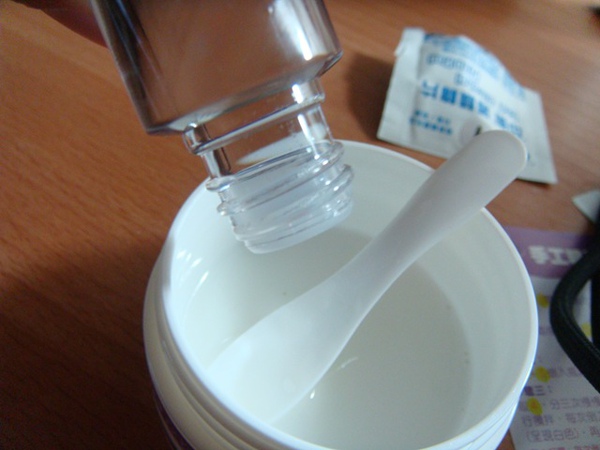 媽呀 我都覺得我變聰明了 這個有夠難倒的=..= 是乳化劑 跟油脂拌一下 加粹取液!! 慢慢加 感覺整個糊糊的 也不知道要怎磨變成護手霜ne~~ 感覺好少>< 有一刻 瞬間 化學變化!!!!! 瞬間變多 QQ 還很多要加進去調ne~~ 繼續拌 哇賽完成了完成了!!! -------------------------------------- 很好玩喲喲喲!!!